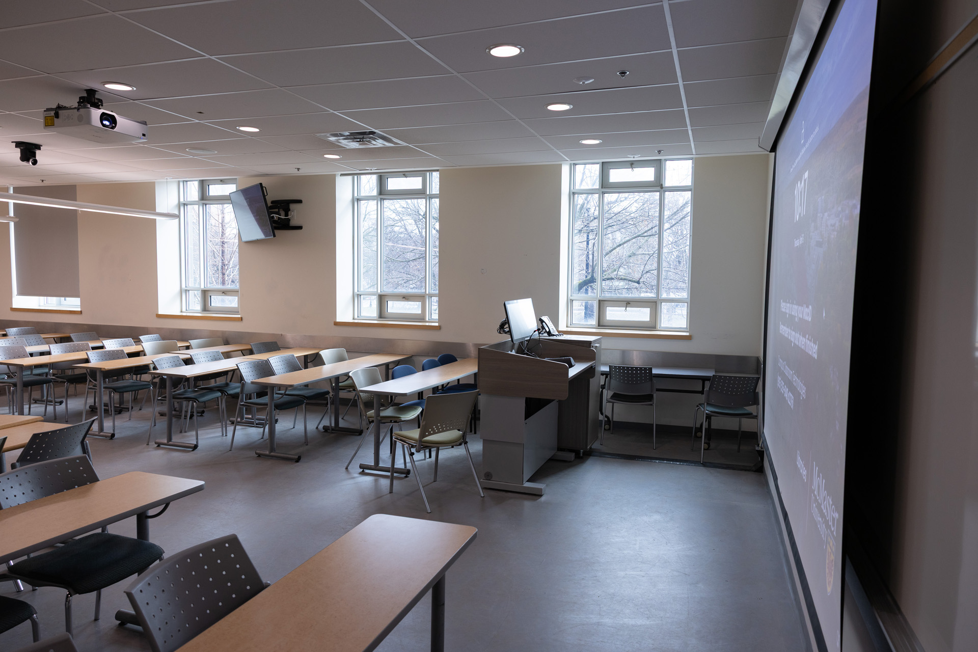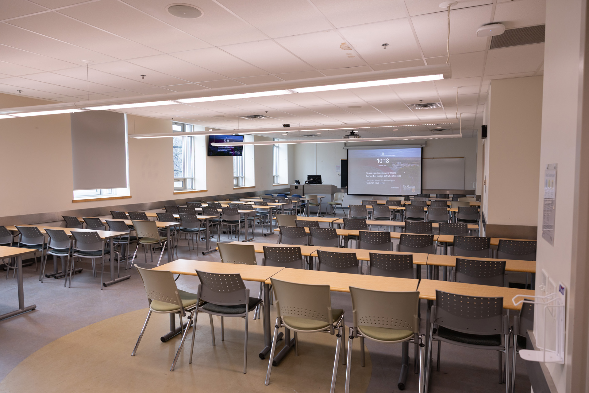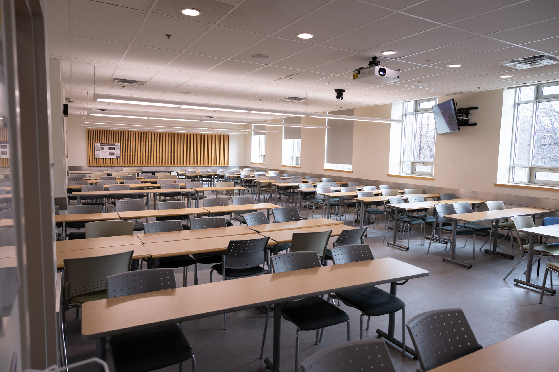 BSB 106 is a spacious and flexible classroom well-suited for coffee breaks and light meals. The room features a bright, open layout with movable seating. Its comfortable setting makes it an ideal space for networking, refreshments, and casual conversations between sessions.
